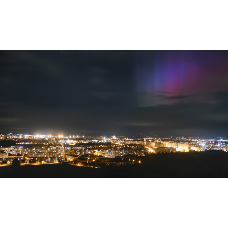 Hradec Králové s polární září. Fotografie pořízená z vodojemu na Novém Hradci Králové