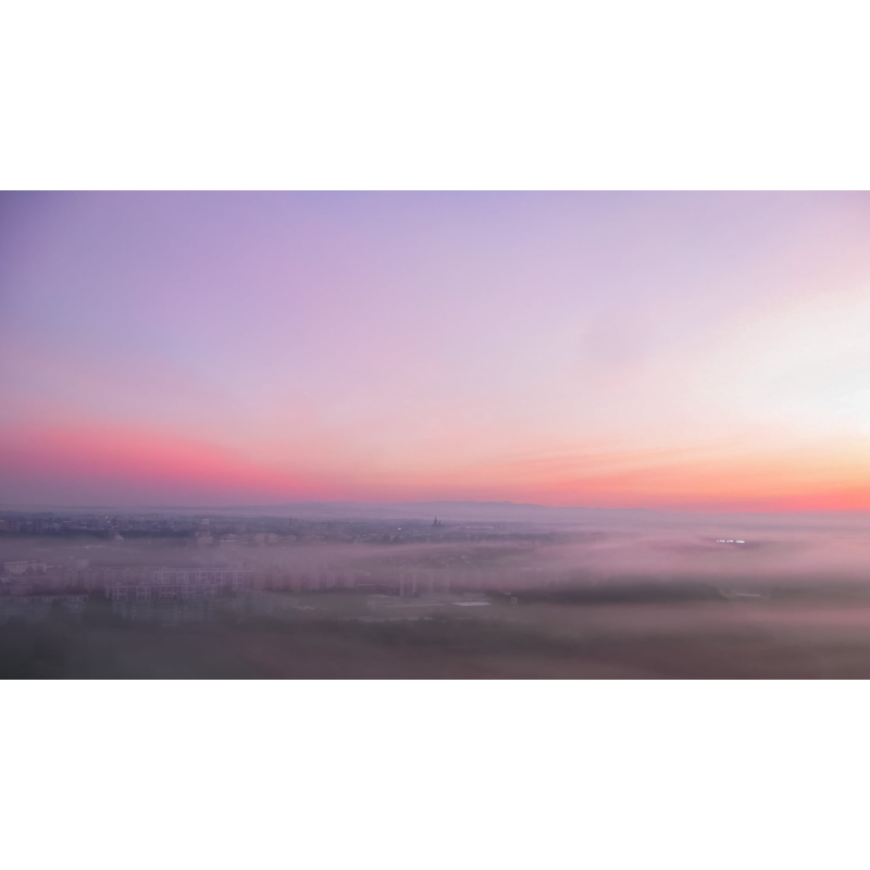 Hradec Králové a východ slunce. Fotografie pořízená z vodojemu na Novém Hradci Králové